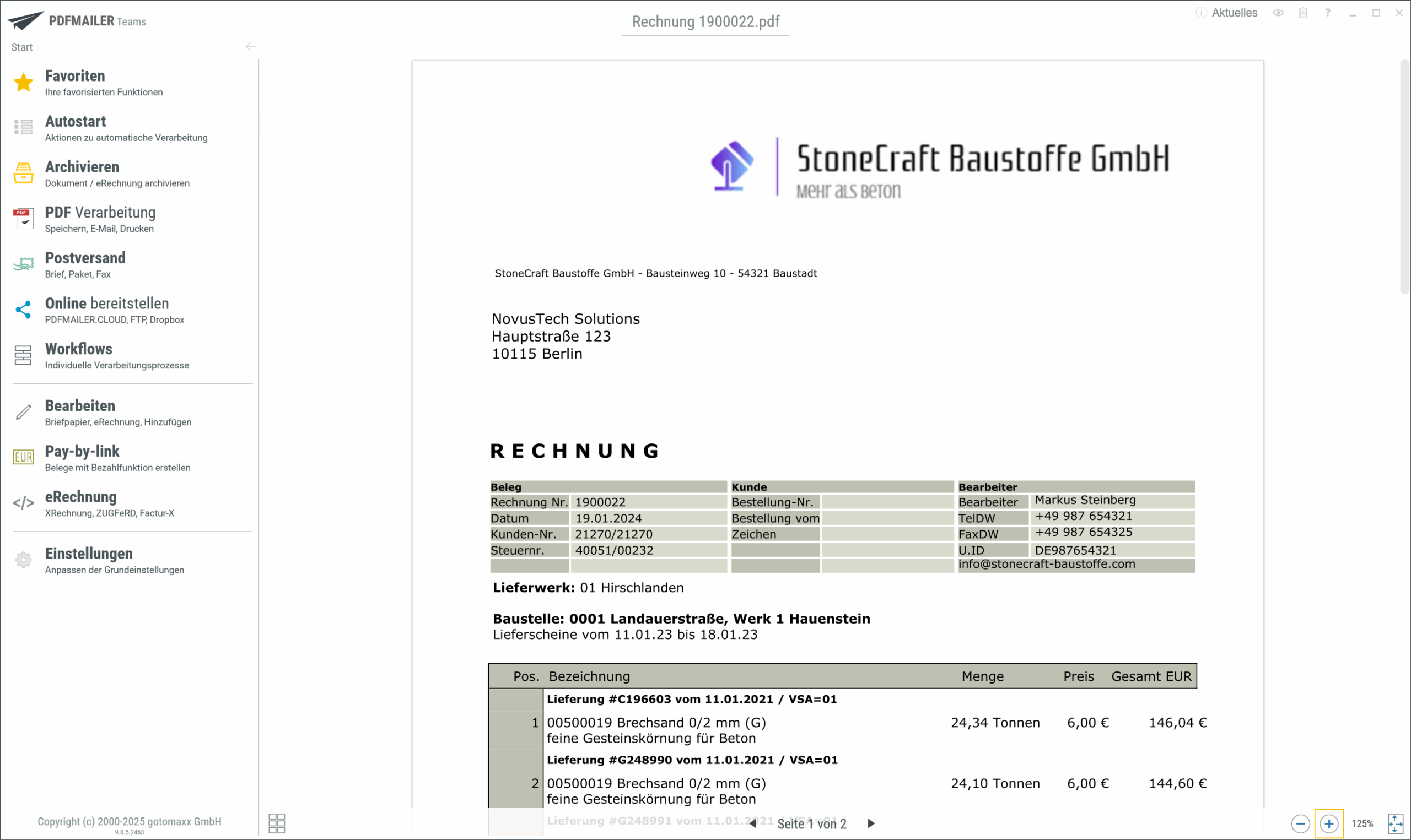 Einmal installiert – sofort im Betrieb: Mit dem PDFMAILER empfangen und versenden Sie E-Rechnungen, Verträge und sonstige Dokumente per Mail oder Brief – sekundenschnell, vollautomatisch, rechtssicher.