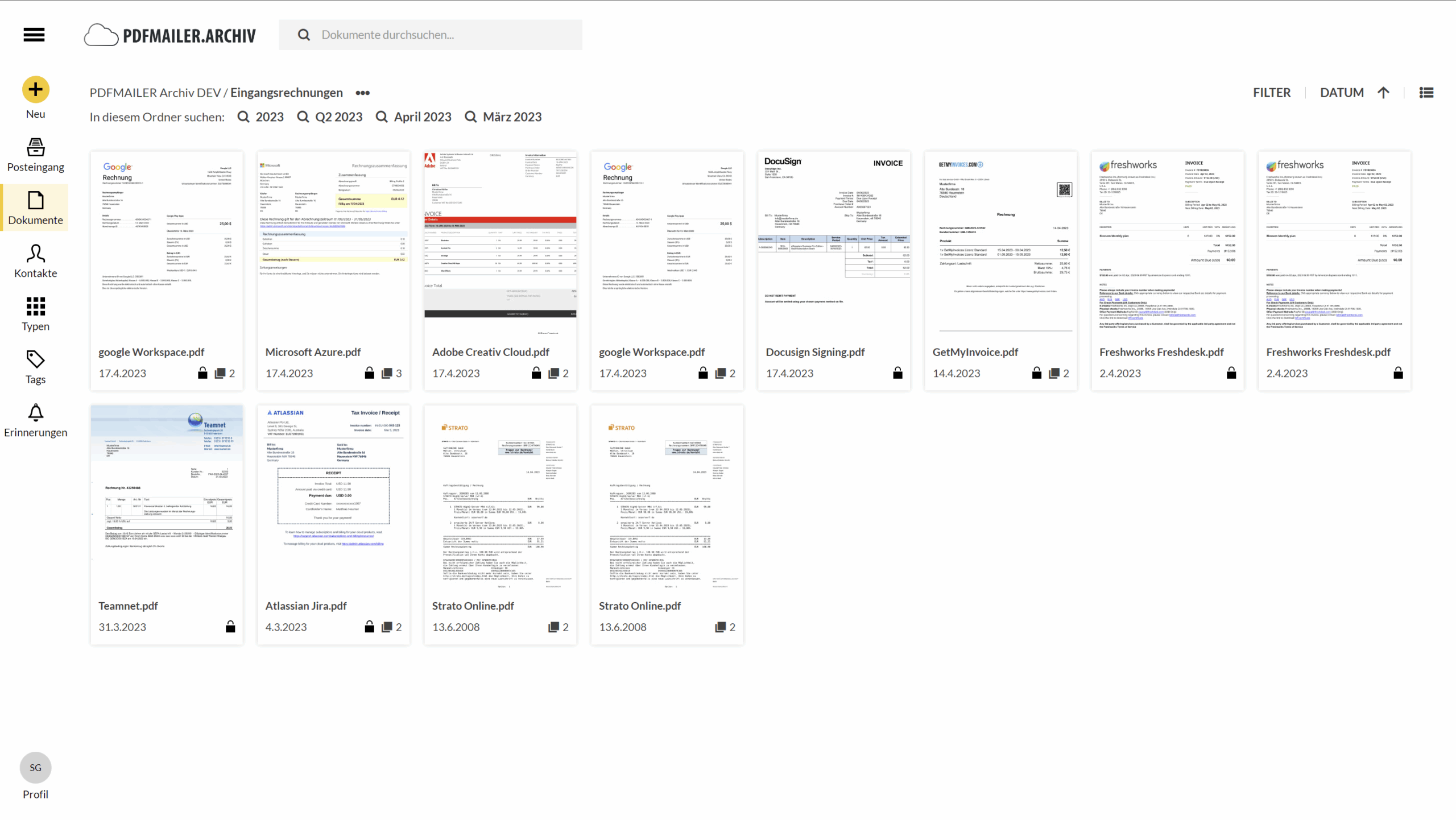 Mit PDFMAILER.ARCHIV archivieren Sie Ihre eingehenden E-Rechnungen zentral, sicher und gesetzeskonform – inklusive intelligenter Dokumentenerkennung und schneller Suchfunktion.
