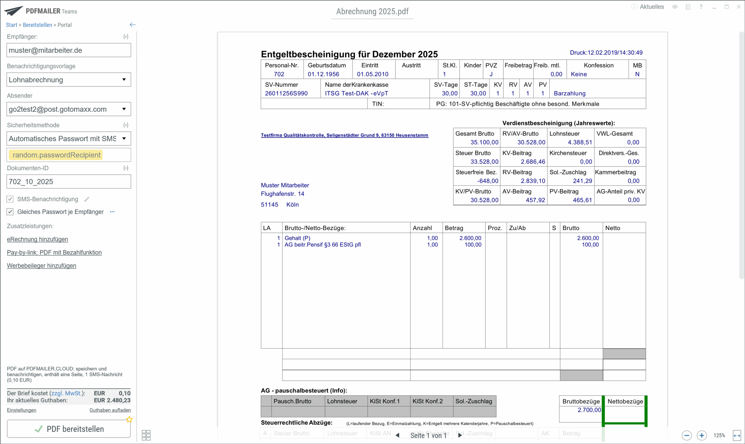 Optional können Sie über Druckkennzeichen, KI oder Skripte auch komplexen Massenversand vollautomatisieren – z. B. mit verschiedenen Versandarten, Empfängersprachen oder Anlagen.